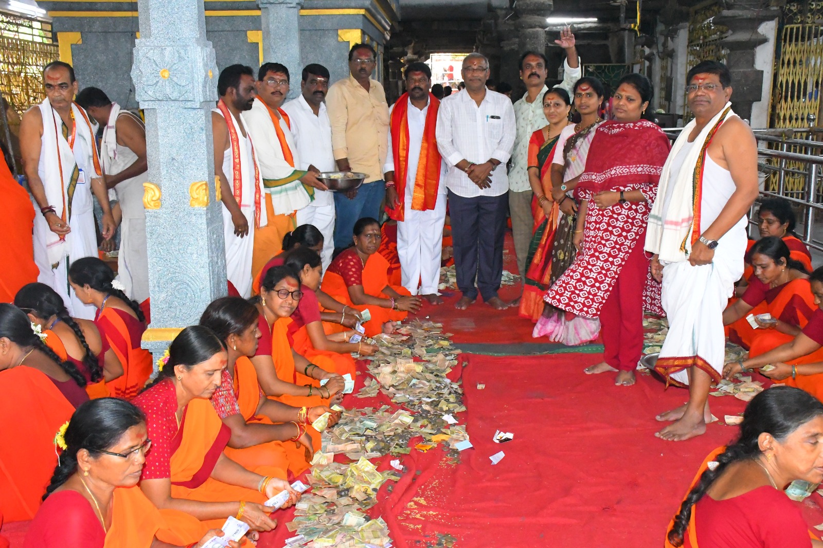 Bhadrakali Temple :  వరంగల్ మహానగరంలో  శ్రీ భద్రకాళీ దేవస్థానం హుండీలు విప్పి లెక్కింపు జరుపగా 61,58,999 ఆదాయం సమకూరినది. అట్టి ఆదాయము యూనియన్ బ్యాంక్, కె.ఎం.సి బ్రాంచినందు జమచేయనైనది. విదేశీ కరెన్సీ 316 యూ.ఎస్.ఏ డాలర్లు, 15 యు.ఏ. ఈ దిరమ్స్, 70 కెనడా డాలర్లు, 5 ఆస్ట్రేలియా డాలర్లు, 10 ఇంగ్లండ్ పౌండ్స్, 100 సెంట్రల్ బ్యాంక్ ఆఫ్ ఓమన్ లభించారు. హుండీలో వెళ్ళినటువంటి మిశ్రమ బంగారం మరియు వెండి తిరిగి హుండీలో వేయనైనది. ఈ హుండీ కార్యక్రమానికి పర్యవేక్షకులుగా శ్రీ వీరభద్రస్వామి దేవస్థానం, కురవి కార్యనిర్వహణాధికారి శ్రీ సత్యనారాయణ, దేవాలయ చైర్మన్ డా॥ బి. శివసుబ్రహ్మణ్యమ్, ధర్మకర్తలు వీరన్న, రాములు,  గాదె శ్రవణ్ కుమార్ రెడ్డి, శ్రీమతి ఎం.మయూరి, శ్రీమతి జి. స్రవంతి, పూర్ణచందర్, బి. సతీష్,  జె. వెంకటేశ్వర్లు, పాలడుగుల ఆంజనేయులు, అనంతుల శ్రీనివాస్, రామల సునీత మరియు ప్రధానార్చకులు భద్రకాళి శేషు, లక్ష్మి శ్రీనివాస సేవా ట్రస్ట్ అధ్యక్షులు జి. కృష్ణారెడ్డి, లక్ష్మి వెంకటేశ్వర సేవా సమితి అధ్యక్షులు  జి. నవీన్ ఆధ్వర్యంలో సభ్యులు 160 మంది మరియు దేవాలయ సిబ్బంది పాల్గొన్నారు.