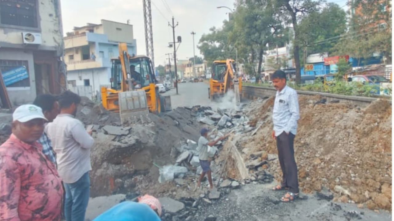 Water pipeline leakage : గత రెండు సంవత్సరాలుగా పోచమ్మమైదాన్ రోడ్ నుండి ఫిల్టర్ బెడ్ వరకు మంచి నీటి పైప్ లైన్ లికేజి కావడం వల్లనా డివిజన్ ప్రజలు ప్రయాణికులు, పాదాచారులు ప్రతి ఒక్కరు ఇబ్బందులు గురైతున్నారు ఈ మంచి నీటి పైప్ 1946 లో పెద్ద పైప్ వేసినది ఈ పైప్ లైన్ లికేజి మారమ్మతు పనులు ఎన్ని సార్లు చేసిన కూడా మరల లికేజి కావడం జరిగింది ఈ రోజు పరిష్కారం కొరకు పైప్ లైన్ లికేజి వెతుకగా నర్సంపేట రోడ్ లో పెద్ద పైప్ లైన్ ను ఓపెన్ చేస్తే ఈ లికేజి కు శాశ్వత పరిష్కారం లభించింది ఈ సందర్బంగా స్థానిక కార్పొరేటర్ “సురేష్ కుమార్ జోషి” వెళ్లి పలు సూచనలు చేసి జరుగుచున్న పనులను పరిశీలించడం జరిగింది