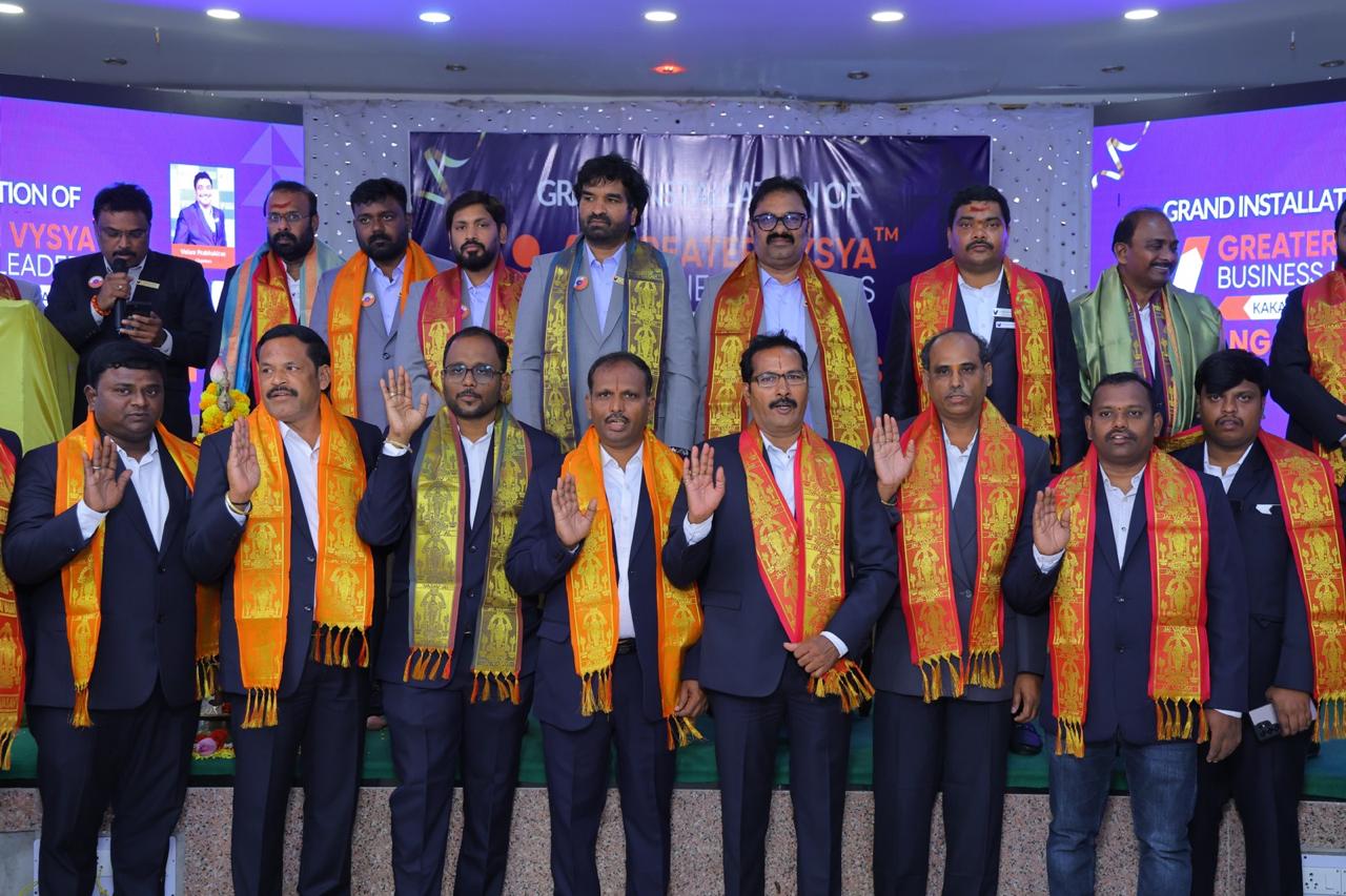 Greater Vysya Business Leaders [GVBL] : వరంగల్ పట్టణం లో గ్రేటర్ వైశ్య బిజినెస్ లీడర్స్ ప్రమాణ స్వీకారం పట్టణంలోని ఆర్యవైశ్య కన్వెన్షన్ సెంటర్ లో ఘనంగా జరిగింది. ఈ కార్యక్రమంలో సీఈఓ మంచి రాజశేఖర్ మాట్లాడుతూ ఆర్య వైశ్యులు వ్యాపార రంగంలో నూతన పోకడలతో కొత్త పుంతలు తొక్కించాలని, కొత్త తరాన్ని ప్రోత్సహించి యువ పారిశ్రామిక వేత్తలను తయారు చేయాలని అన్నారు. కాకతీయ చాప్టర్ చైర్మన్ గా ఓలం ప్రభుకిరణ్, వైస్ చైర్మన్ ఆపరేషన్ గా బొడ్ల రవీంద్రనాథ్, వైస్ చైర్మన్ ఫైనాన్స్ గా గౌరీశెట్టి ప్రభాకర్ లతో పాటు 14 మంది డైరక్టర్లు, 65 మంది సభ్యుల తో ప్రమాణ స్వీకారం చేయించారు. ఈ కార్యక్రమంలో టైటాన్ కౌన్సిల్ అధ్యక్షుడు జిల్లా ప్రసాద్, కార్యదర్శి రవీందర్, మెంబెర్స్ శ్రీనివాస్, రవి, వేణు రామిని లావణ్య, ఆనంతుల వీణ, పల్లెర్ల చైతన్య, గార్లపాటి ప్రసన్న రోజా ,తోట కళ్యాణి లు పాల్గొన్నారు, అనంతరం మహిళలు, చిన్నారులు ఆట పాటలతో ఆనందంగా ఈ కార్యక్రమాన్ని నిర్వహించారు.
